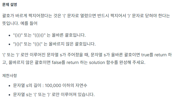 여기까진 문제가 없으나 괄호가 담긴 문자열을 순회하기위해 문자열.split("")을 사용하여