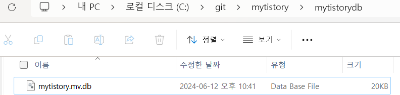 본인은 현재 프로젝트 폴더 안에 있는 mytistorydb폴더 안에 mytistory라는 이름의 db 파일을 만들겠다고 선언했다.