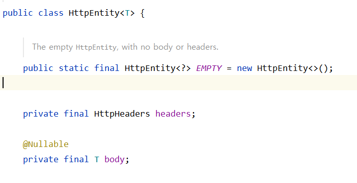 따라서 RequestEntity와 ResponseEntity는 HttpEntity 내에 있는 HttpHeader, HttpBody를