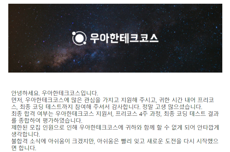 결과는 역시나 불합격, 이미 예상하고 있었지만 그래도 좀 슬펐다.