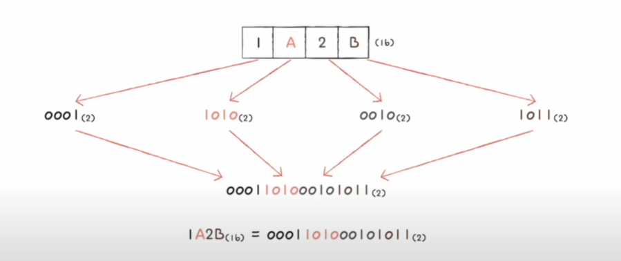 이진수를 간결하게 표현하기 위해 16진수를 사용한다.