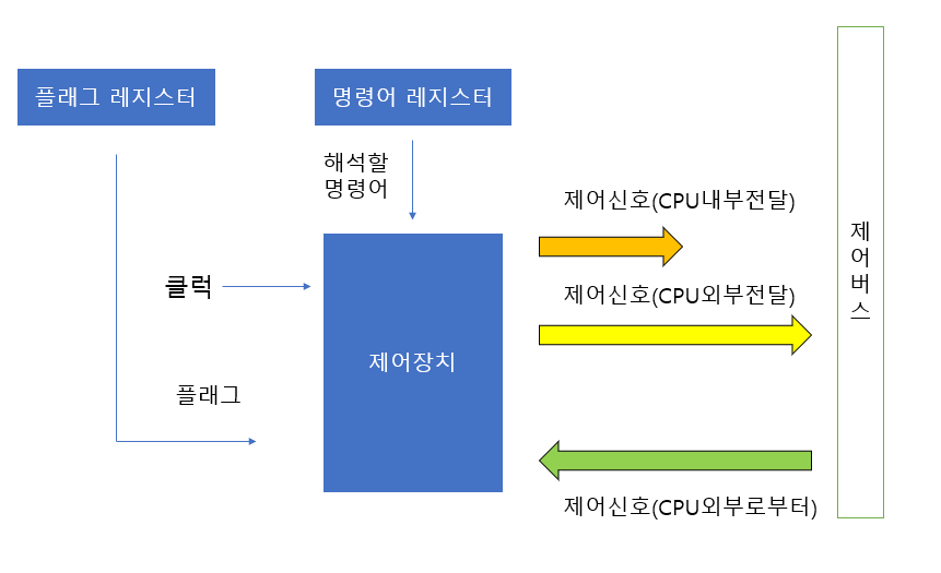 주변 장치로부터 제어장치는 제어신호를 받게 된다.
