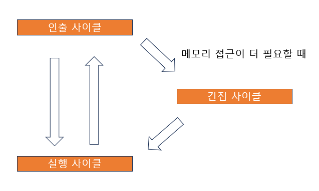 이때는 메모리 접근이 더 필요한 경우로 간접 사이클에 돌입하게 된다.