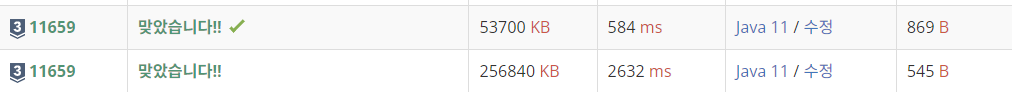 이후 한번에 출력해 메모리와 런타임을 줄이도록 하자