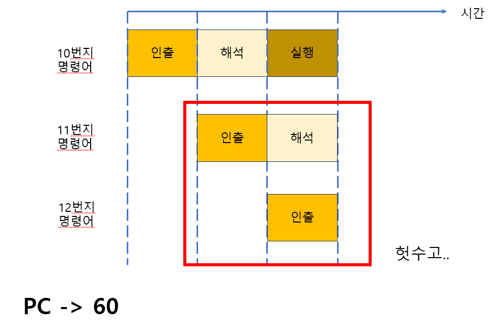 11번지 -> 12번지 명령어를 해석하고 인출하는 작업이 헛수고가 되어버린다.