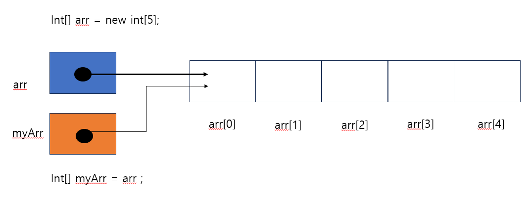 배열을 생성하고 생성된 배열 주소를 레퍼런스에 넣는다.