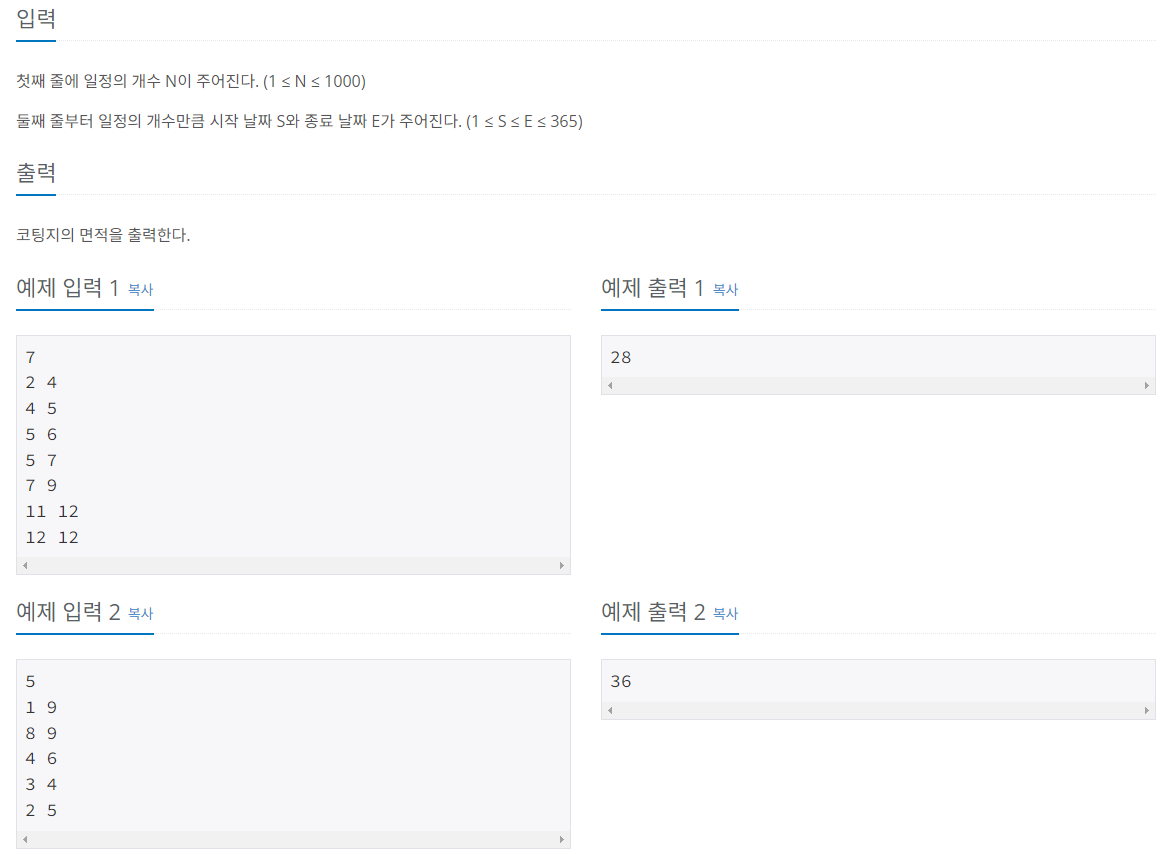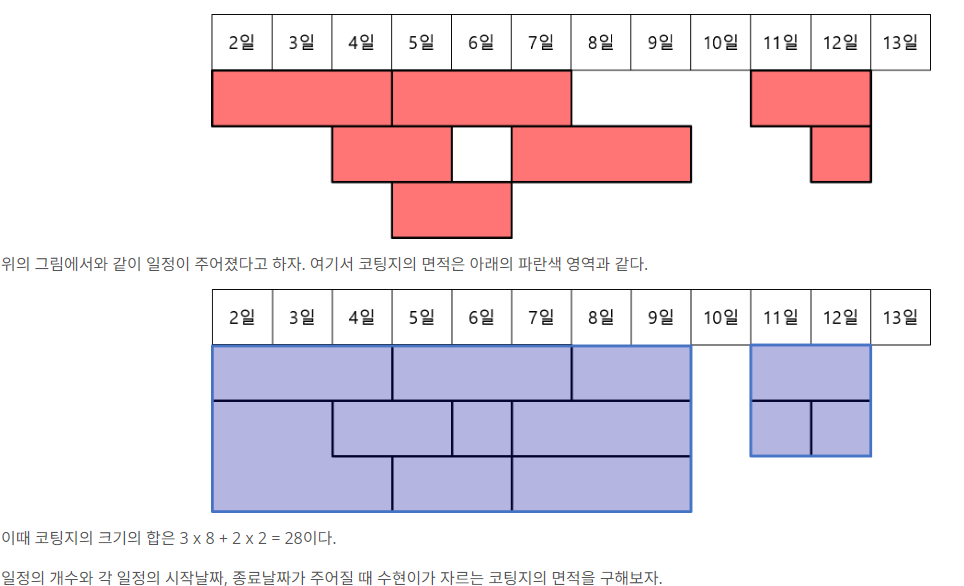 * 구해야하는 것 : 각 일정이 이루는 사각형들의 넓이 합