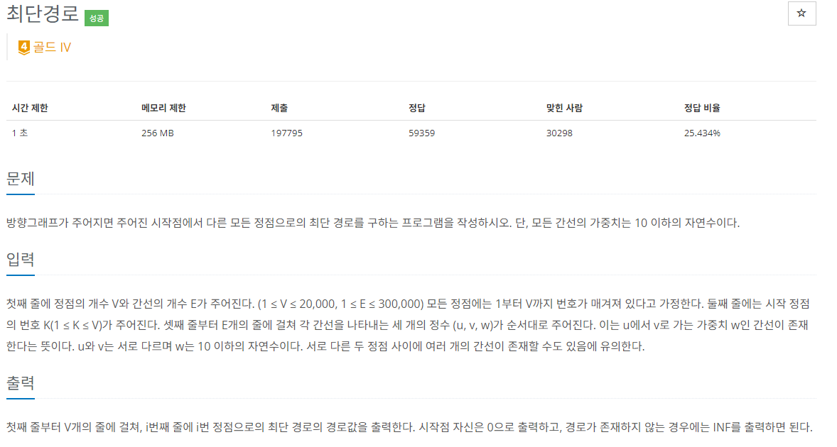 다익스트라 알고리즘을 공부하며 대표 문제인 최단 경로 문제를 풀어보았다.