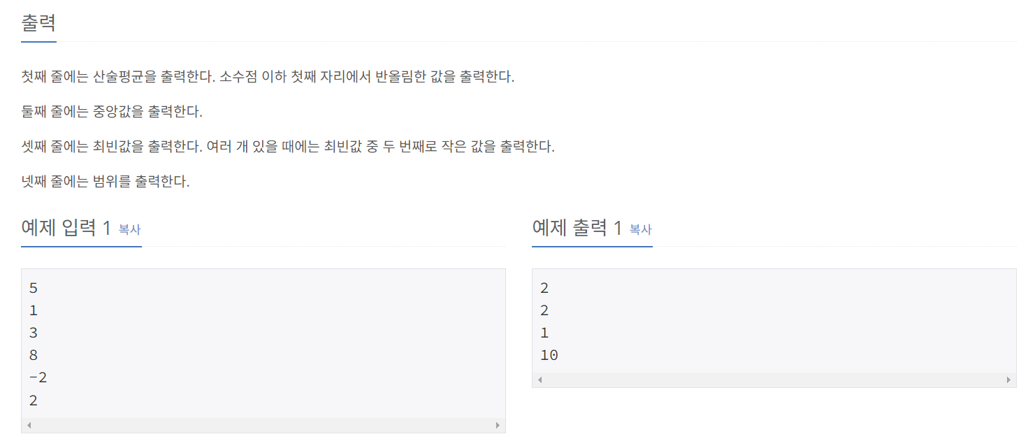 어려운 문제는 아니었지만 산술 평균쪽과 최빈값 계산에 있어서 살짝 헤맸다.