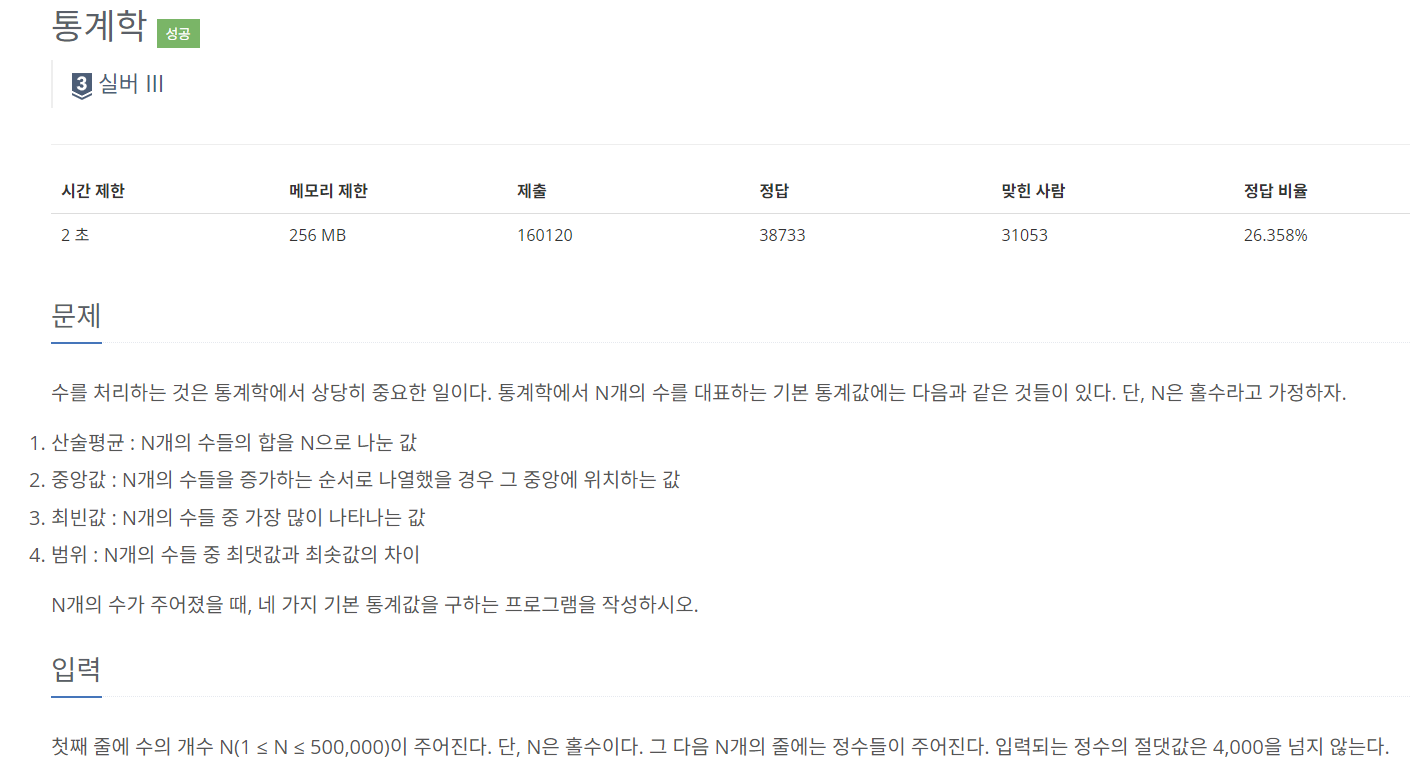 구현 문제인 통계학 문제이다.