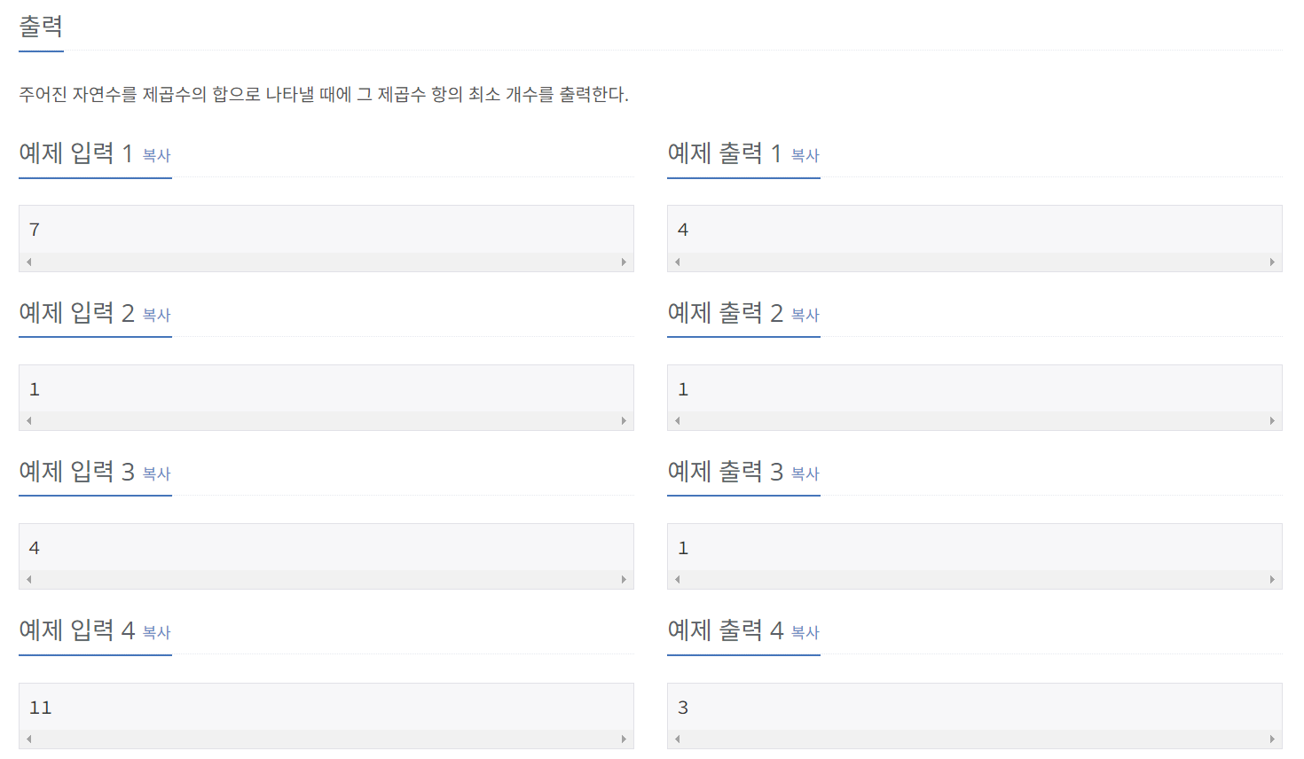 단순 반복문으로 해결하려고 했다. 하지만 이 경우는 항의 최소를 구할 수 없는 방법이었다.