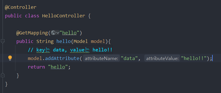 위 같은 경우는 resources:templates/ + hello + . html 이 되겠다.
