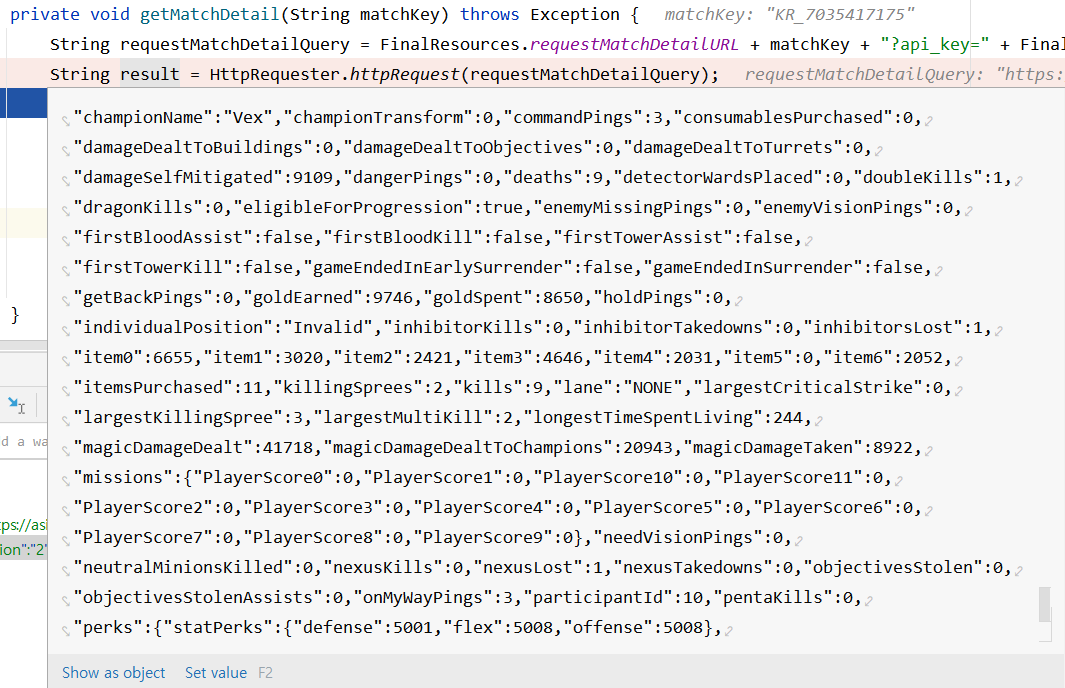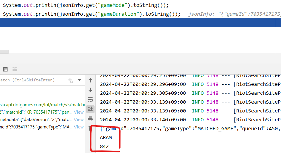 get("gameMode")와 get("gameDuration")으로 잘 추출되는 것을 볼 수 있다.