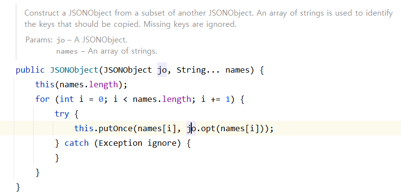 JSONObject 클래스를 뒤져본 결과 생성자 중 String 파라미터를 JSONObject에 집어넣었을 때